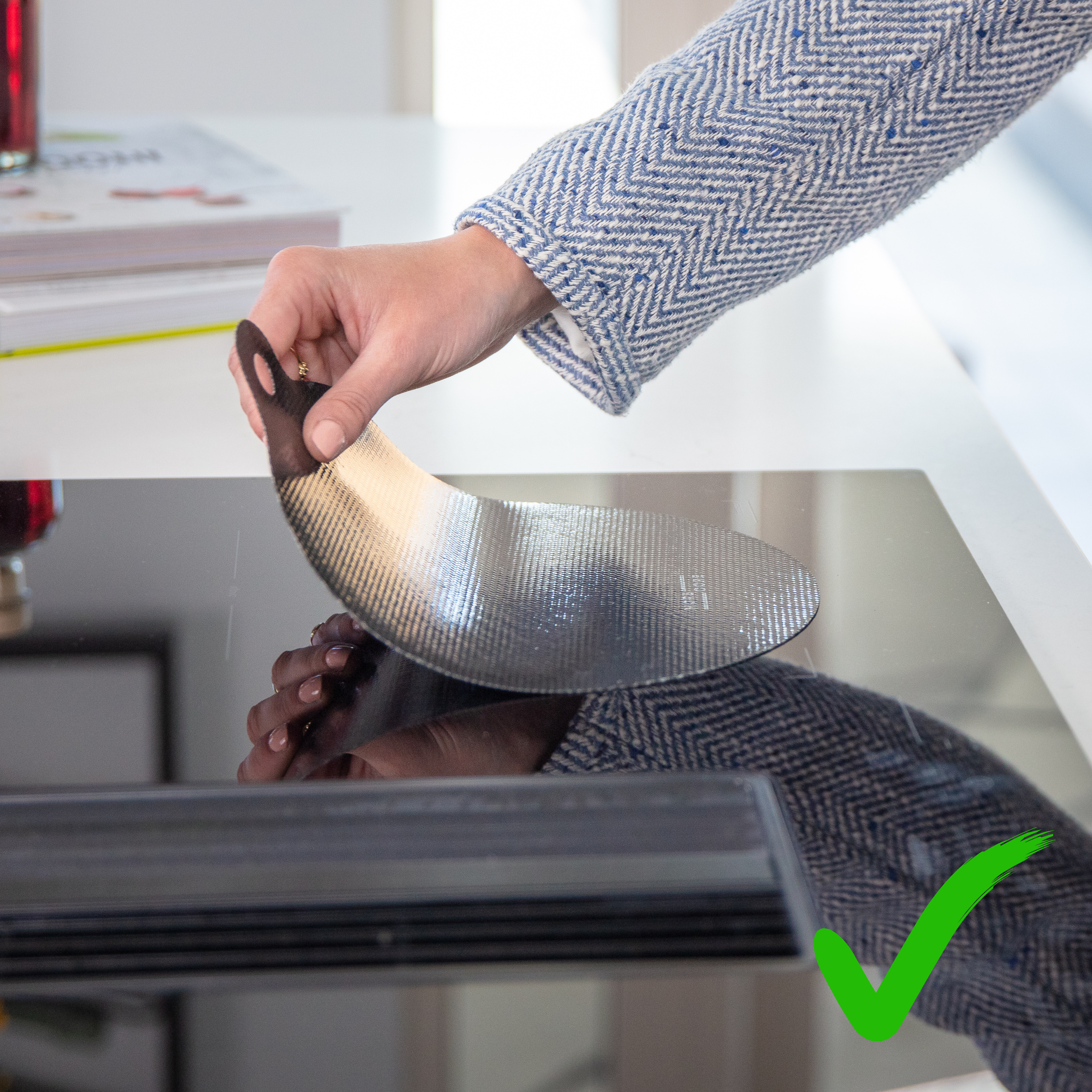 Je pannen zullen niet meer schuiven en krassen veroorzaken doordat onze inductie beschermers een slimme antisliplaag hebben. Hierdoor worden de pannen stevig op hun plaats gehouden en wordt de warmte van de kookzone doorgelaten zonder warmteverlies. Daarnaast vangt het matje overgekookt eten op waardoor ingebrande etensresten geen kans meer hebben. Krassen en vuil op je kookplaat zijn vanaf nu verleden tijd!